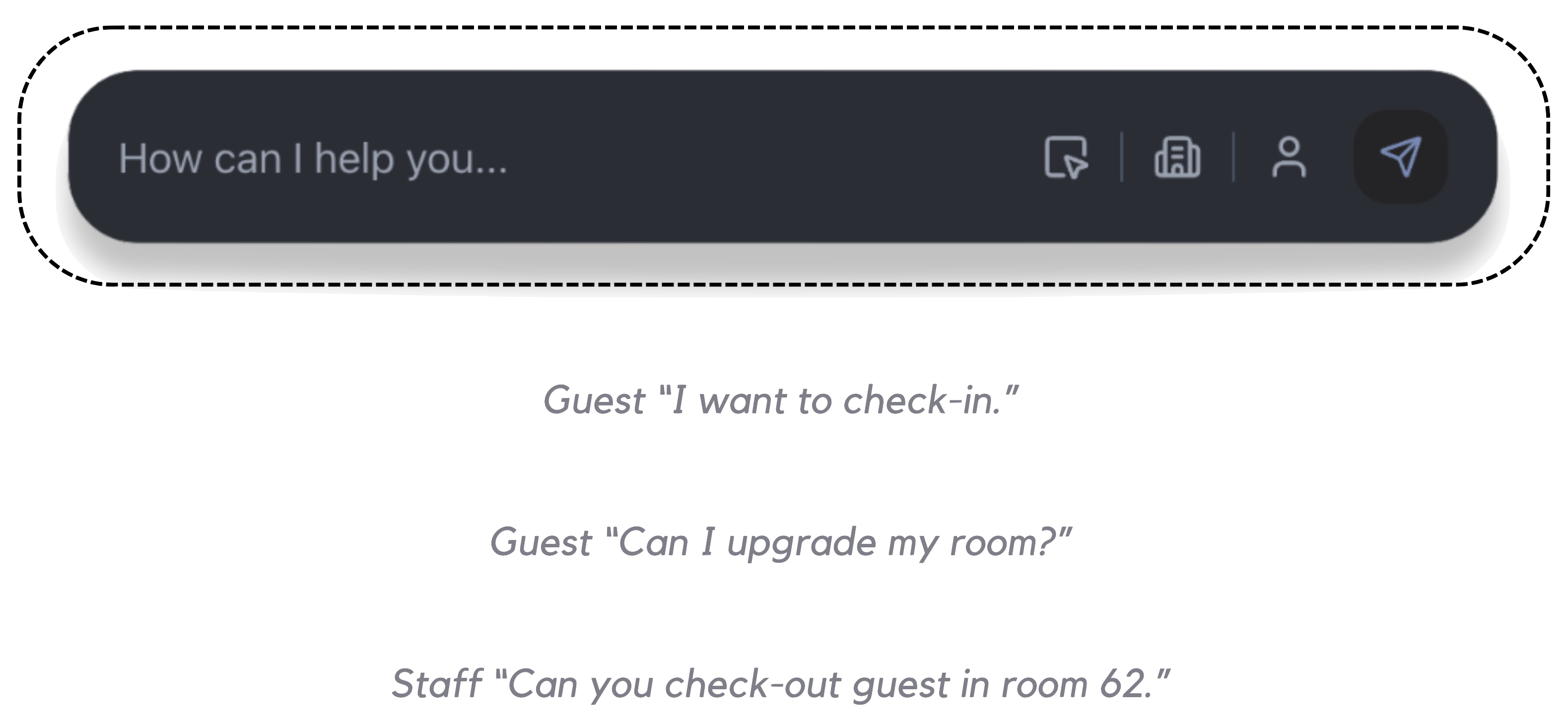 Choose the personality, define the knowledge base and couple all front-desk action to guest requests.