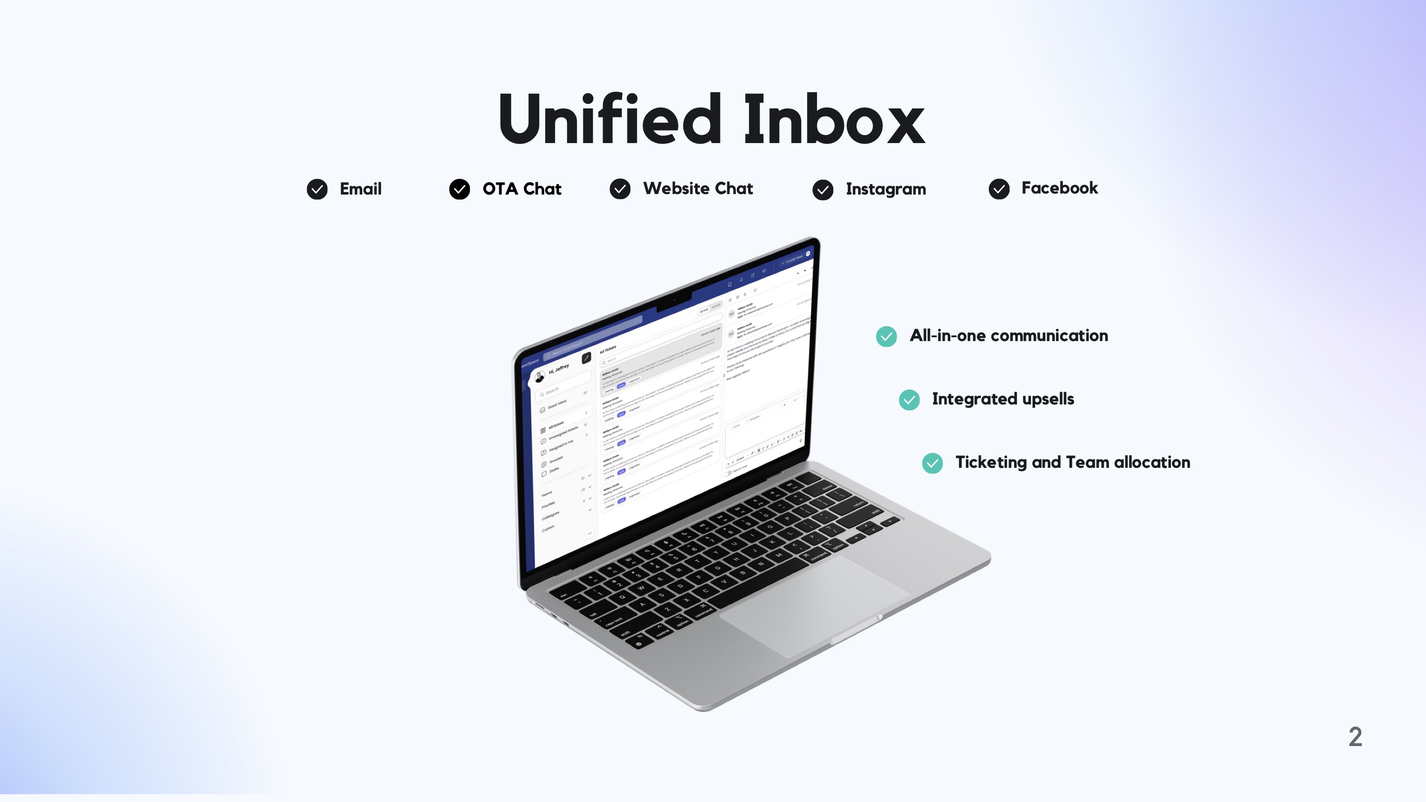 Your control room for the agent, inbox, and guest journey. Configure content, monitor conversations, manage requests, and keep everything consistent across channels.