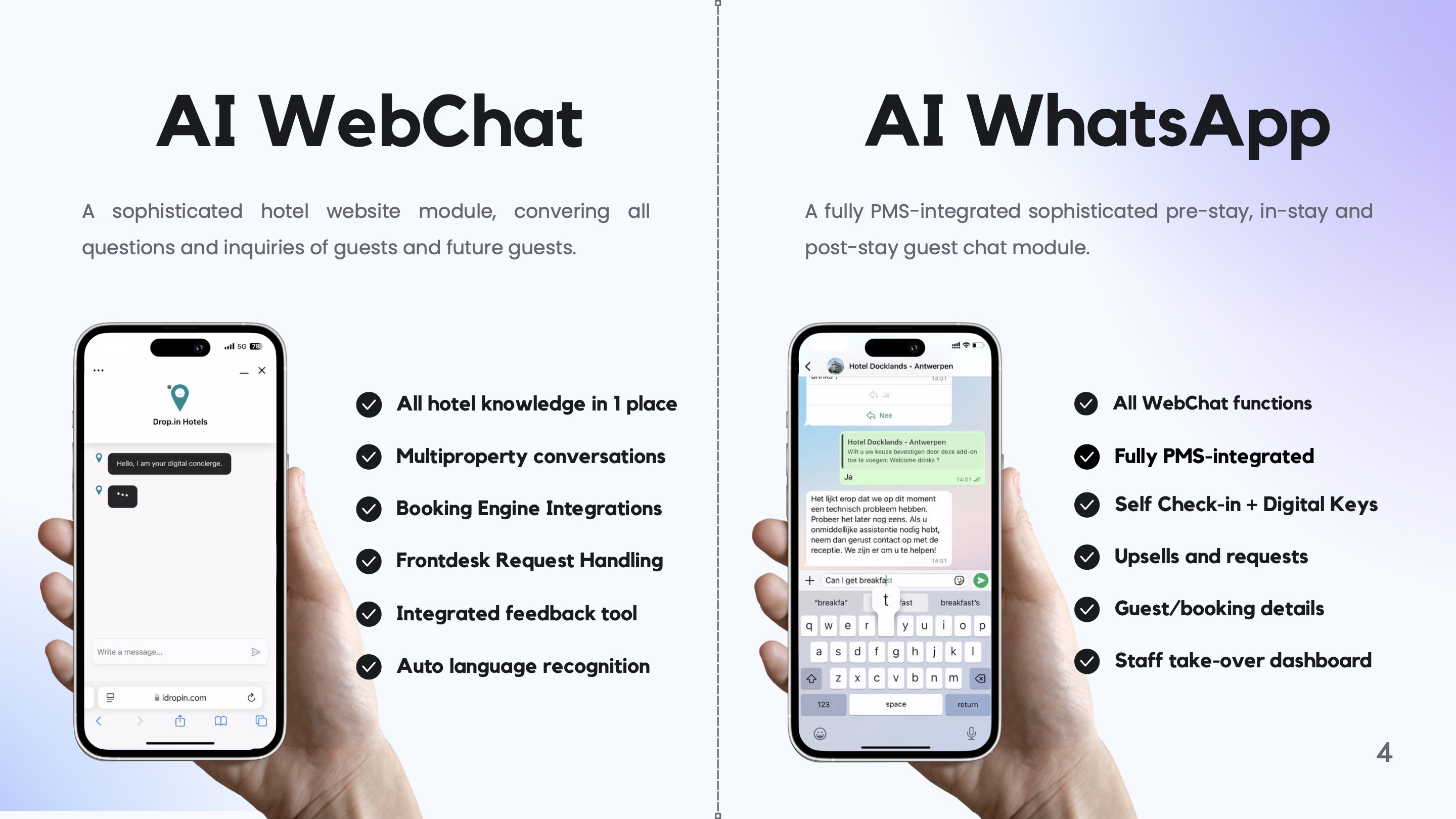 Drop.in connects to your PMS and turns every guest touchpoint into an automated, branded experience.